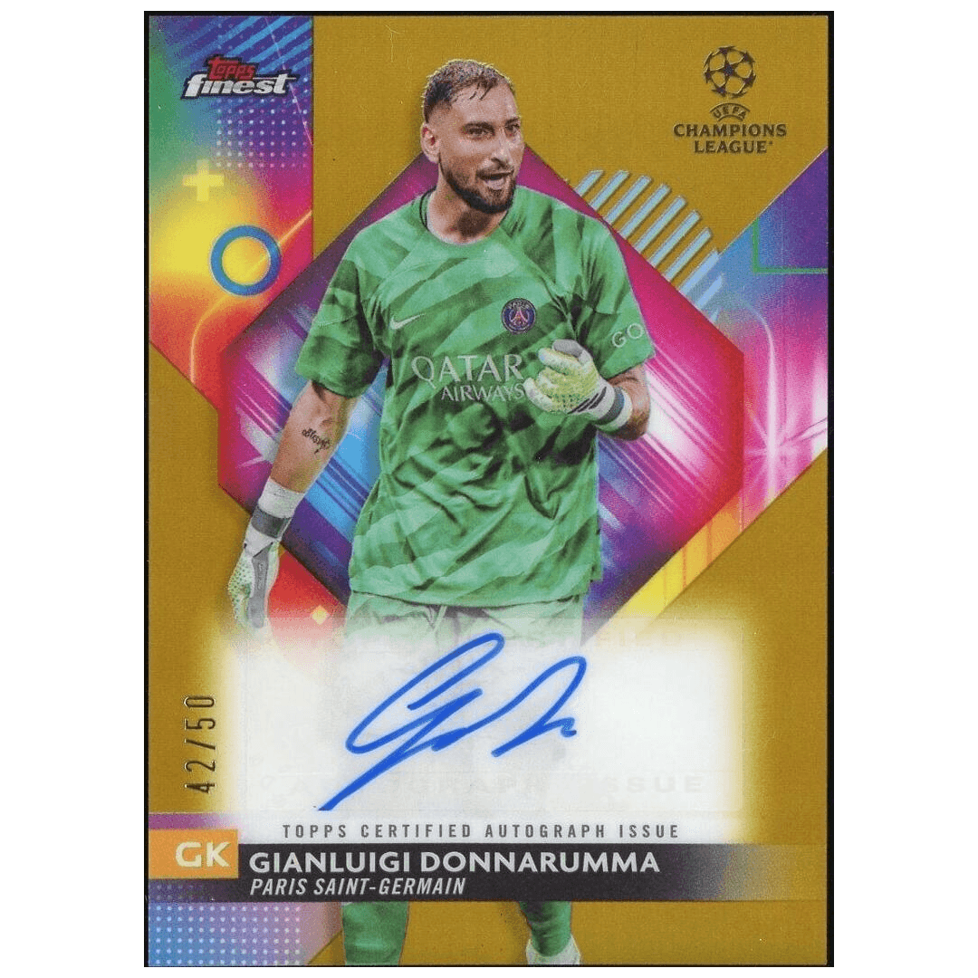 2023-24 Topps Finest UEFA Club Competitions – Autographs Gianluigi Donnarumma Gold Refractor 42/50
